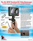 A compehensive range of very economically priced videoscopes with dia. down to 3.9mm and screw-on side view adapters which don't increase the overall probe diameter. Available with either 3.5" or 7" LCD portable monitors, SD card recording and PAL/NTSC video output. Some rigid and 2-way articulating insertion tubes are also included in the range. Insertion tubes are available in lengths up to 10m and have tungsten braiding.